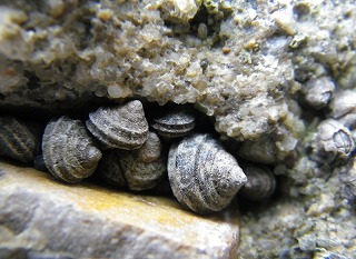 【左】ニホンスナモグリ 【中】イソシジミガイ 【右】タマキビ