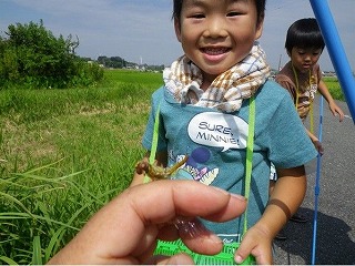 【左】頑張ってトンボ取ったぞー 【右】 サー 川に入るぞー!