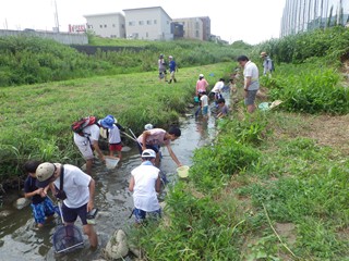【行事名】 稗田川・平地川の生き物観察  ● 半田市環境課主催