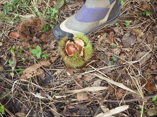 【左】まったくの保護色で動かなければ分からなかった 【中】実が入っているクリもあった 【右】道端にあった乾燥ハリガネムシ