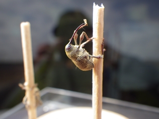 ゾウムシになる。指導員が見やすいように標本化して持参したもの