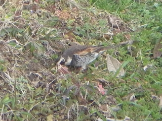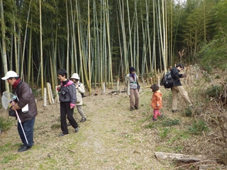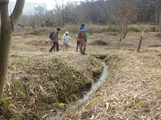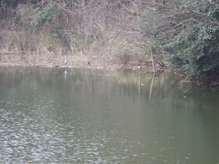 道筋の草花たちがロゼッタ型に大きく葉を広げ、少しでもたくさん日の光を浴びようといじらしくがんばっている姿が見られた。タチツボスミレらしきスミレもしっかり花を開かせていた。植物だけでなく、ネズミの出入りしているらしい巣穴?や、ヌートリア(池を泳いでわたっていた)、ツグミの群れ、カラスの集団、メジロの群れなどの動物類も見られ、少しづつ生き物の活動ははじまっていることが感じられた。 (記・竹内秀)