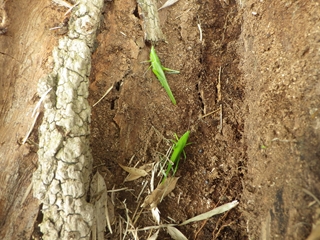 【左】ツチイナゴ 【中】ヒメホシカメムシの成虫と幼虫。結構、早く動いていた 【右】ユミアシゴミムシダマシ