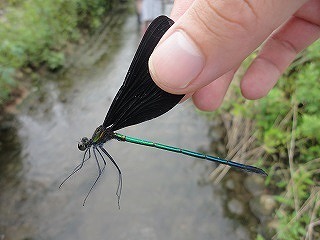 【左】優しく触ってね 【中】仲良く観察しました 【右】ハグロトンボ