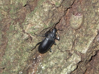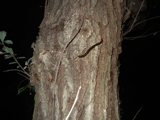 真っ暗闇の自然公園内の道を進む。樹液に集まる虫を探したが、なかなか、甲虫の姿は見つからない。展望広場で一休みの後出発点に戻り灯火に集まった虫たちを観察。コガネムシ類、バッタ類、セミ・カメムシ類、小型のガ類が多数賑やかに飛来した。期待していた大型のガやカブトムシ類が現れなかったのはちょっと残念。