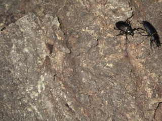 【左】始めのお話    【右】ナイトハイク…クモの子が幹上に集まっていた…アリの集まりと見間違えた