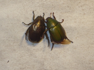 【左・中】同一個体…カヤキリ。大型のキリギリス      【右】ドウガネブイブイ & アオドウガネ
