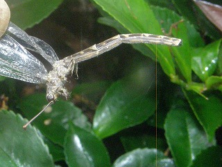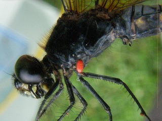 【左】ハラビロトンボに寄生している赤いダニ 【中】誕生したアキアカネ高い山に旅立ちます 【右】ウスバカゲロウ類