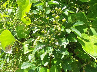 【左】ピラカンサ(外来の栽培植物) 【中】ジュズダマ 【右】アレチハナガサ(外来)