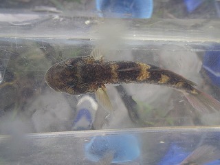 10時40分頃には川からあがり、降幡、金内指導員の周りに集まり、皆で集めた生き物の一つずつを丁寧な説明を受けた。テナガエビのオスメスを観察ケースに入れて見比べた。ゴクラクハゼを日当たりで見ると極楽浄土?の様 とても綺麗。