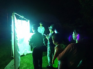 最後に灯火装置のところに戻り集まってきた虫さんを観察しました。(記・降幡)