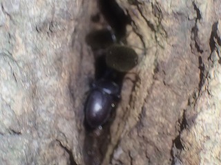 【左】たくさん集まってきたね      【右】コクワが穴の中にいるよ