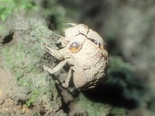 【左】ニイニイゼミ            【中】ニイニイゼミの抜け殻            【右】ヒメホシカメムシ