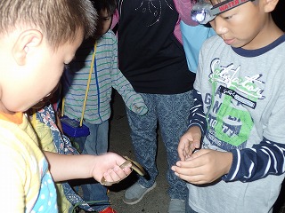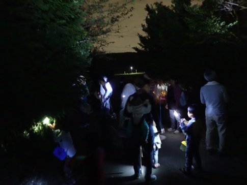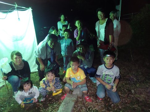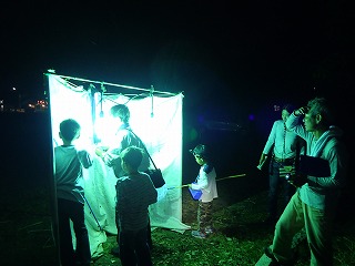 今年は、たくさんの家族がさんかしてくれました。お子さんはみんな虫が大好きこばかりでした。来るや否や灯火に集まったアオドウガネを次から次へと虫かごの中に取り込んでいました。