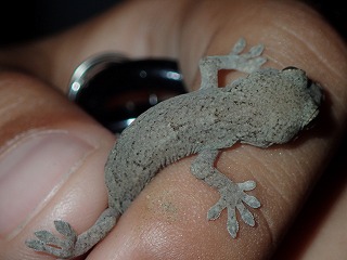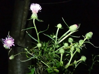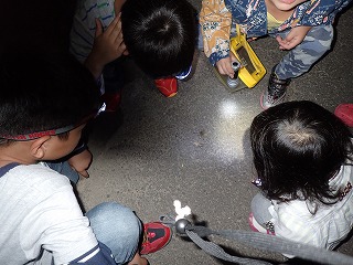 【左】明りに来た虫を観察 【右】なにかいるみたい