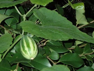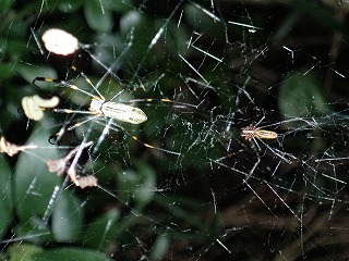 【左】カラスウリ 【中】イヌビワ 【右】ジョロウグモ。大が♂
