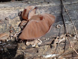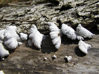 【左】スエヒロタケ 【中】アラゲキクラゲ(食) 【右】ホウロクタケ