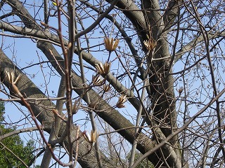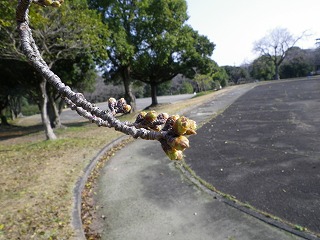 【左】ソメイヨシノ(未開花) 【中】ハンテンボク(種子) 【右】ヤマモモ(雄花開花)