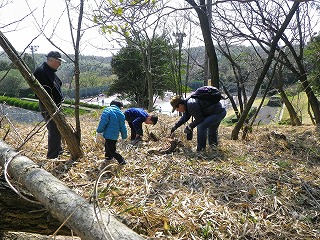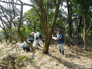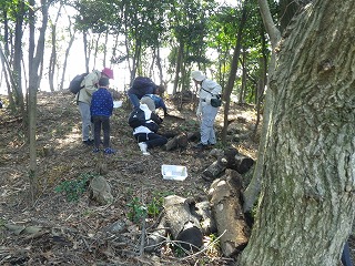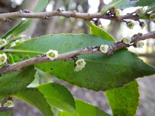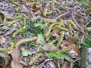 【左】ヒサカキ(雌花) 【中】ヤシャブシ雄花(落花) 【右】観察会会場の雑木林