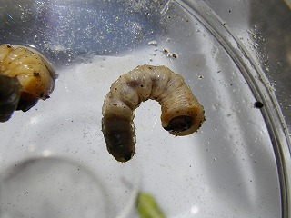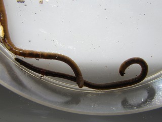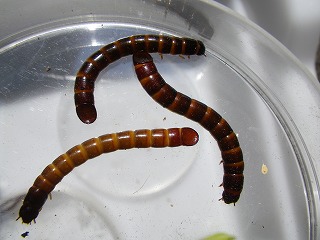 【左】コウガイビル 【中】キマワリ(幼虫) 【右】カミキリムシ(幼虫)