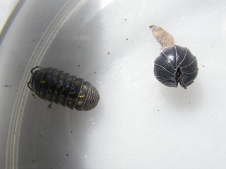 【左】オカダンゴムシ 【中】アオズムカデ 【右】トビズムカデ