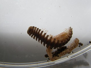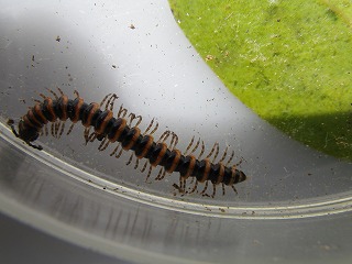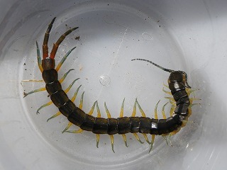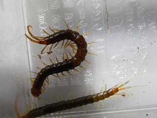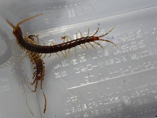 【左】トビズムカデ(長) 石ムカデ(短) 【中】マクラギヤスデ 【右】ヤマトアカヤスデ ?