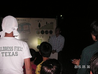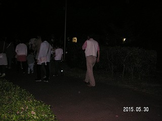公園管理協会主催の行事です、公園管理協会の方2名参加され、冒頭挨拶があり、そのあと担当者がヒメボタルについて話をして、ヒメボタルのいる雑木林に出発です。残念ながらヒメボタルは見られませんでした。観察日が少し遅かったのかもしれません、自然相手ですから仕方ありません、これも観察会です。10時すぎには集合場所に戻り解散です。管理協会の方から観察会のやり方について提案があり、参加された方たちが、ホタルを見られないのは問題なので、タブレットや写真をつかつて行ったら、との話もあり参考にさせていただきたいと思います。(記・岩崎)