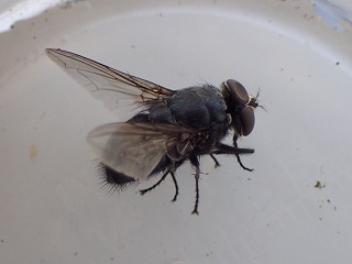 【左】オオクロバエ。涼しくなると出現します 【中】ツズレサセコオロギ 【右】クロウリハムシ
