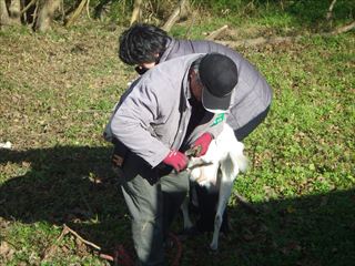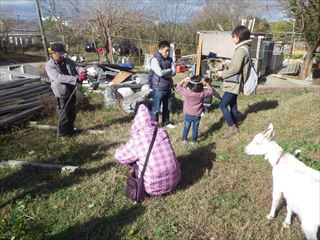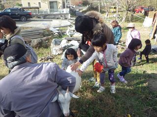 【左・中】ヤギの爪切りを観察。爪(つめ)も観察した 【右】子どもたちは、やっぱり、ヤギをさわりたい