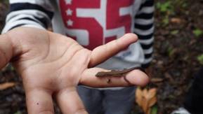 ダンゴムシ、カタツムリ、コガネグモ、カナヘビ