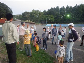 【右】説明後、指導員からのお話(カブトなど捕りに行く場合の考え方) 【左】主催者の終わりのあいさつ