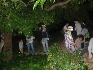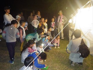 「ナイトハイクと灯火に集まる虫