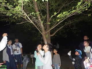 今回は、始めの諸注意のときに、全員が捕る虫網を持っている子どもたちへ指導員から"カブトやクワガタを見つけても、捕らないでね"とお願いした。後から続く人や他のグループの全員がその状態を見ることができるように…。また、"どうしてもほしい人は終わってから捕まえに行って下さい"を付け加えた。