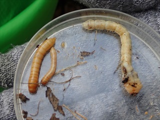 【左】クワガタムシの幼虫がいた 【右】 チビクワガタ