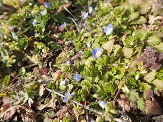 だんだんと青空が広がり温かくなってきた。それでも、草木たちはちゃんと春の準備をし、オオイヌノフグリやホトケノザが花を咲かせていた。寒さをしのいで、セイタカアワダチソウやスイバ、ハルジオンたちがロゼッタ状になって葉を広げて太陽の光を浴びようとがんばっていた。