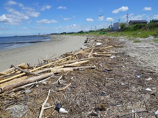 【左】12号台風後の流木   【中】砂礫浜と消波ブロック   【右】砂浜