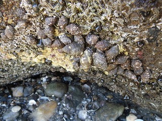 フジツボの仲間、カメノテ、ホンヤドカリ、イソガニ、ガザミ、イシガニ(死骸)