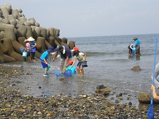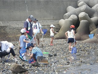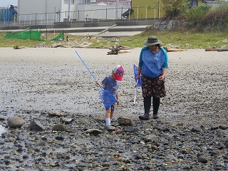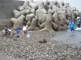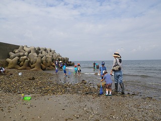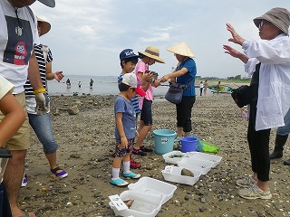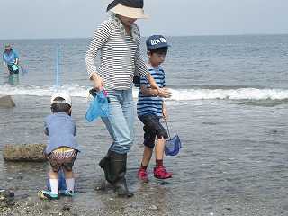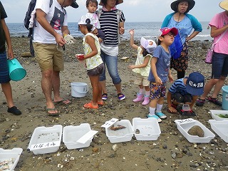 10時30分過ぎには遠浅になり海辺の生きものが次々と採集観察できるようになりました。