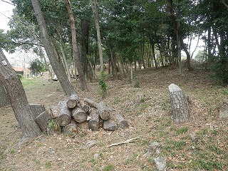 【左】公園案内   【中】クロマツ伐採木   【右】コナラ伐採木