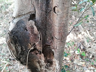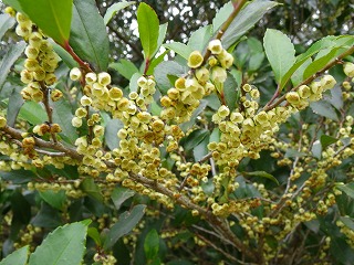 コナライヌガシ、カクレミノ、ニセアカシア、ヒサカキ(開花)、シャリンバイ、シュロ、クロマツ、イチョウ、クロガネモチ、木本性蔓類