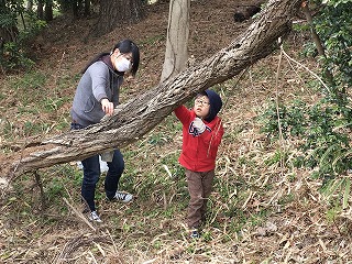 【左】朽ち木の中を探そう     【右】カブト虫の遺骸