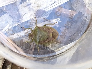 【左】ツマキヘリカメムシ   【中】チャバネアオカメムシ   【右】ナガニジゴミムシダマシ