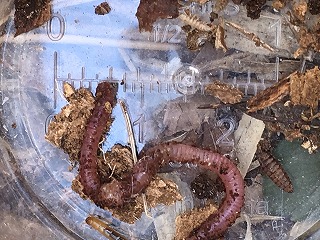 【左】ミミズの仲間   【中】みみずの仲間   【右】ケバエ(幼虫)