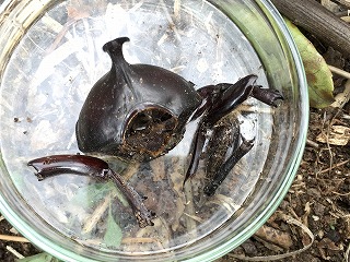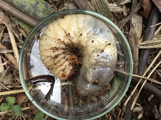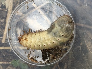 定番のカブトムシ、コクワガタ、カナブンの幼虫は比較的大きく人気者で、今回も参加家族のうれしいお土産になりました。
