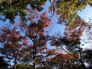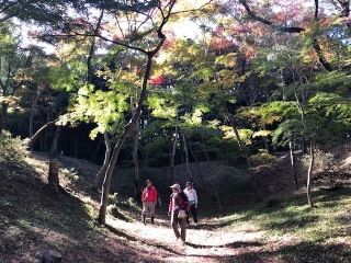 紅葉する日長神社周辺の自然を観察しました。赤や黄に色づいた紅葉が覆いかぶさる紅葉谷を中心に、様々な生き物を観察しました。
