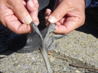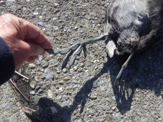 ・オオバンの足の指のヒレ(?) を見た(阿久比川の岸。死んでいたオオバンで)