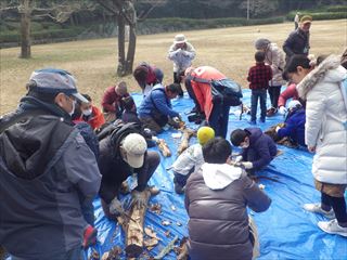 この活動(朽ち木解体)は子どもたちも大好きで積極的に頑張るので中身の濃い観察会となるが、来年からは「練習→本番」という日程を変えようと思う。園内の散策路で「成体で越冬する虫」を探してから、後半で少し「朽ち木の中の虫」を観察する。やはり、この日程が本来の日程であるような気がする。 (記:榊原正)