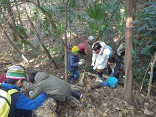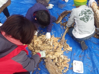半田ブロックの「冬越しの虫」観察は「朽ち木の中の虫」が中心なので、実施日の二日前に練習用の朽ち木を準備している。