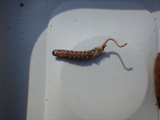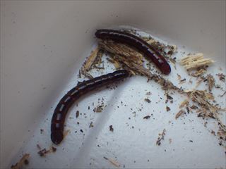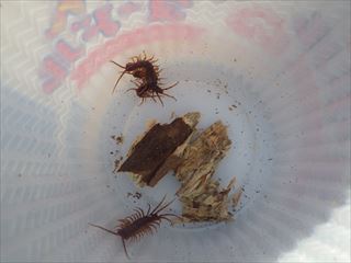 【左】イッスン(一寸)ムカデ 【中】 キマワリ幼虫。毎回観察できる幼虫 【右】甲虫のなかま