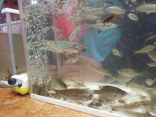 貴重なウナギは今年も見つかりました。婚姻色のあるオイカワの美しさにみんなうっとり。カダヤシの数が例年より少ないように感じられた。みんなで頑張って、たくさんの生き物を採取することができた。